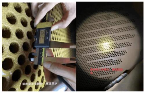 通過檢修期間對電廠機組凝汽器內(nèi)部鈦管的檢查發(fā)現(xiàn),凝汽器內(nèi)部鈦管結(jié)垢嚴重,特別是高溫回水區(qū)域特別明顯。實際直徑參數(shù)