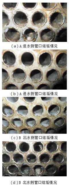 從圖3可以看出,凝汽器內(nèi)部確實存在明顯污染,污染物主要是粘泥,可以通過膠球系統(tǒng)的高效清洗來去除。