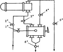 膠球清洗技術是20世紀80年代發展起來的冷卻器清洗技術,先在熱電行業冷卻水系統中使用,它需要膠球清洗泵及膠球收、放的旁路設備,系統較復雜。在試驗的基礎上研制出的一種用于冷卻器的新型膠球在線清洗器,其結構見圖1。它具有水流定向切換和特殊的膠球收、放機構,可利用循環水的系統動力實現在線清洗。