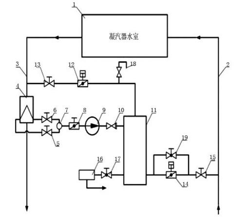 圖6改造后的凝汽器在線膠球集中清洗系統示意圖
