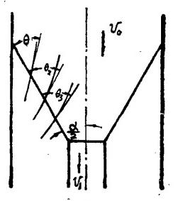 (1)進(jìn)入下方箱的中心部分流體(以下簡稱中心部分流體)既不加速也不減速,其余部分流體亦不發(fā)生變化。對于無粘性流體,此時(shí)V?=V。。在這種情況下流線不發(fā)生任何變化:仍為平行直流線。各處流線與收球網(wǎng)板的夾角均相等,等于網(wǎng)板與中心線的夾角(圖2),即式中α為收球網(wǎng)板的設(shè)計(jì)夾角。