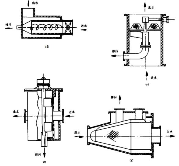 (a)固定外旋式(b)帶蝶閥外旋式(c)翻板式反沖洗(J)內旋式(e)負壓反沖洗Ⅱ型(f)負樂反沖洗四型(g)負壓反沖洗I型負壓反沖洗二次濾網大的優點是運行可靠,反沖洗效果好,且流動阻力小,可降低循環水泵耗功,較之其它形式濾網應優先被使用: