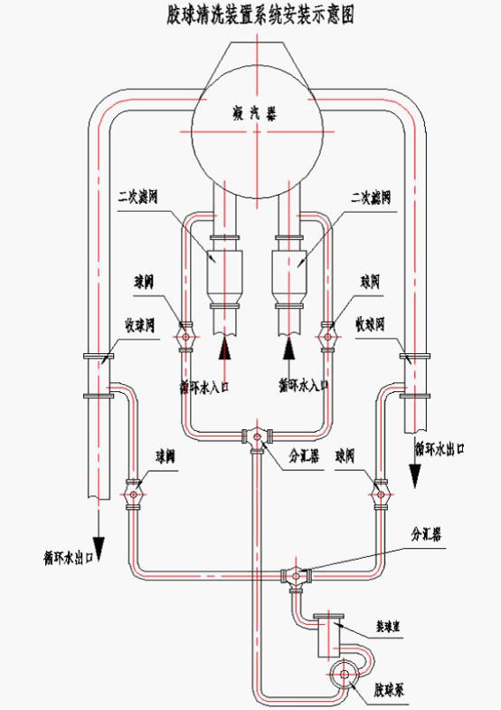具體安裝如圖膠球清洗系統(tǒng)圖所示