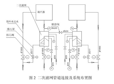 3.2循環水二次濾網系統示意簡圖及管道連接系統圖(圖1,圖2 )