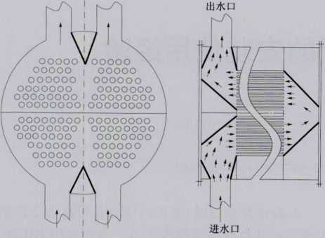 圖2凝汽器水室內部増加導流板示意 粗線條為增加的導流板